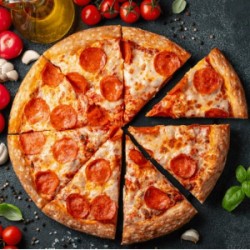 Our tomato based pizza topped with beef pepperoni, and cheesy mozzarella on our Italian rich tasty dough. A delicious classic.